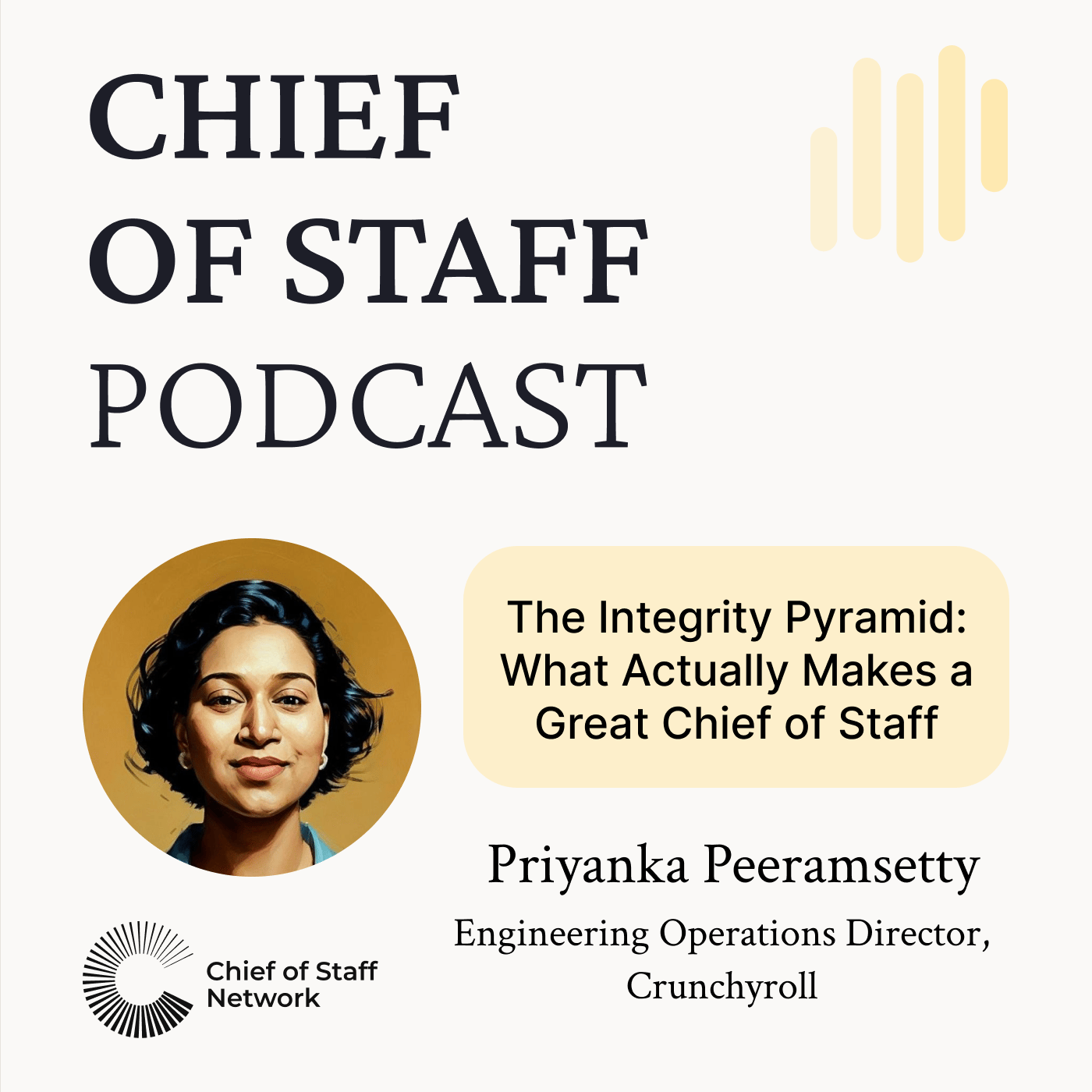 In this week's episode, Exec Coach and Chief of Staff Network Fellow, Tristan Lim, sits down with Priyanka to unpack how she actually operates. And early in the conversation, she offers a metaphor that I really like. The maestro of an orchestra. You're not playing the violin. But you know exactly when to bring in the strings, when to let the brass carry it, and when to pull everything back. The music only works if someone holds the whole picture in their head while everyone else focuses on their part.